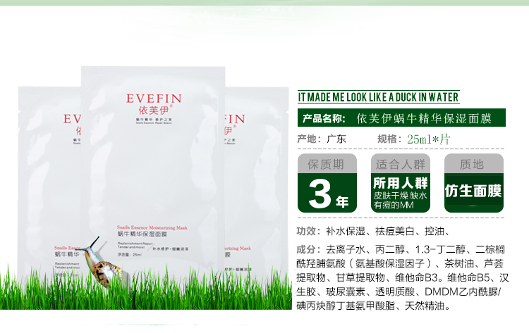 【品 名】:依芙伊蝸牛精華保濕面膜