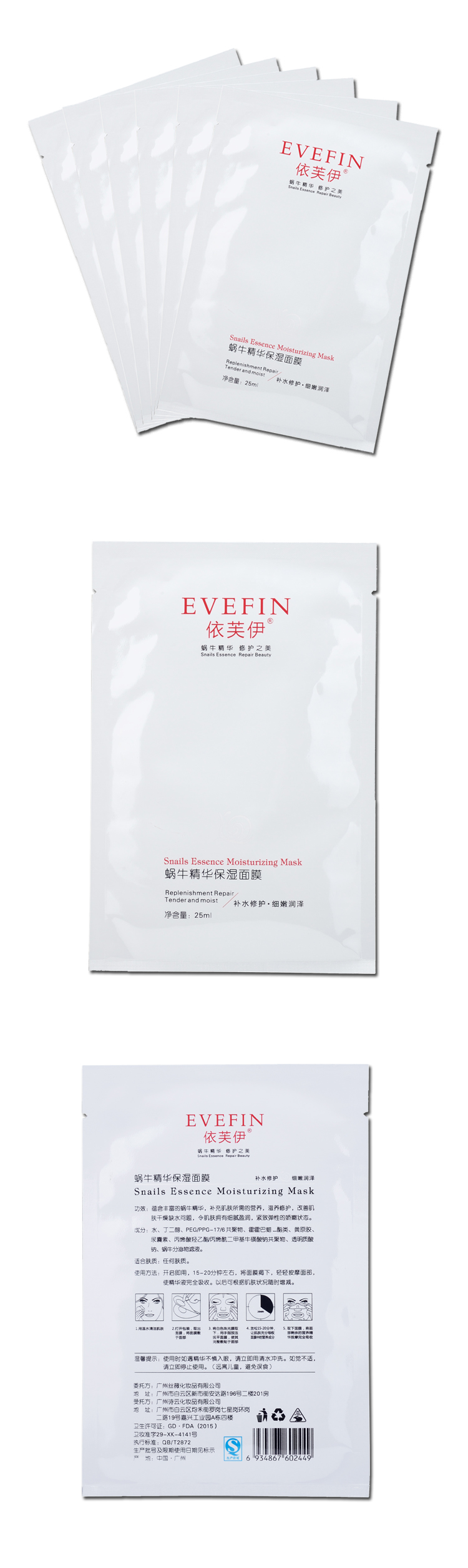 依芙伊蝸牛精華保濕面膜美白補(bǔ)水祛痘去痘印修復(fù)肌膚仿生膜超薄化妝品OEM加工
