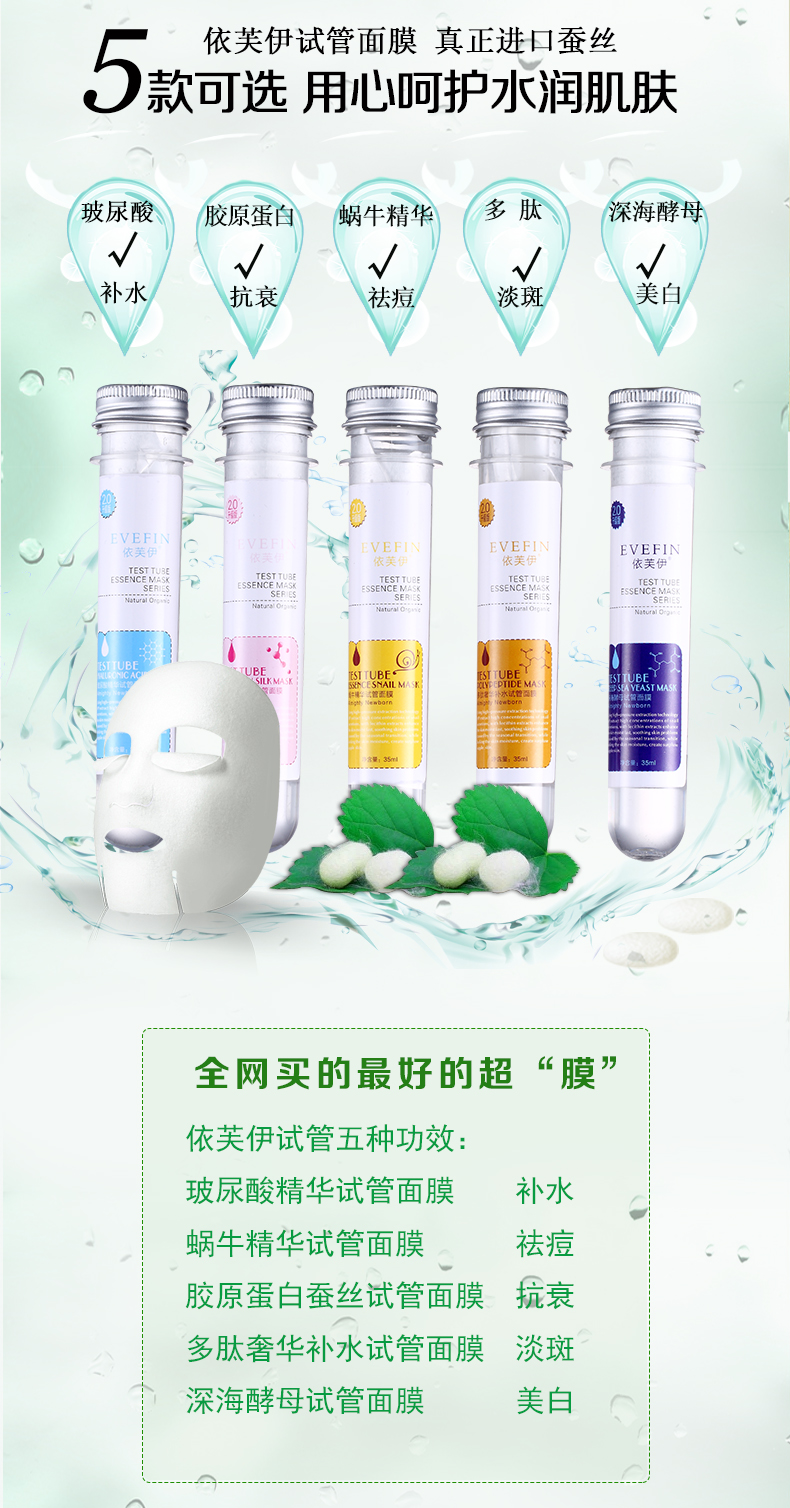 蝸牛原液面膜補(bǔ)水美白修復(fù)祛痘印收縮毛孔蠶絲試管面膜貼 試管面膜oem加工
